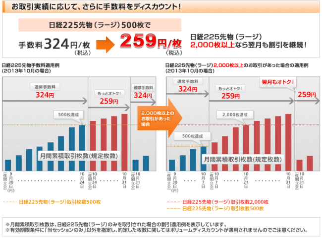 日経225先物(ラージ)のボリュームディスカウント手数料(段階手数料)は、